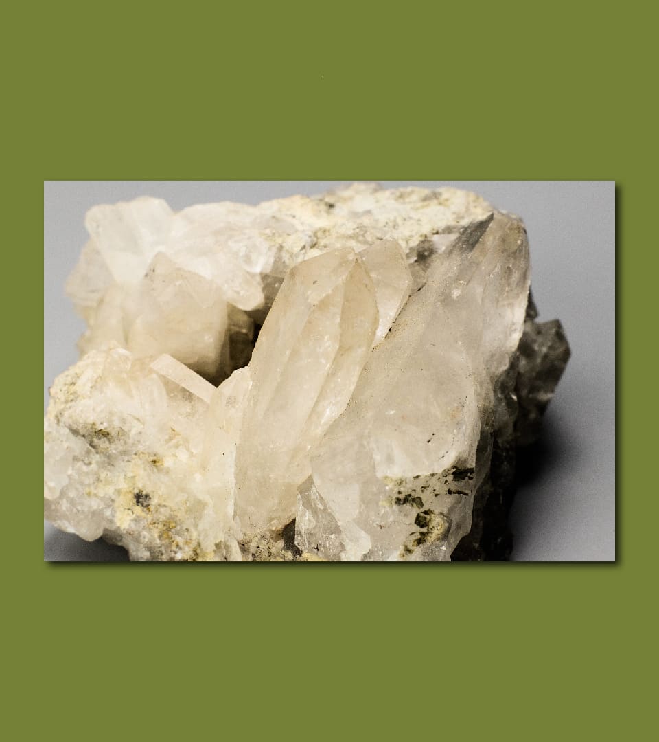 - Color: Incoloro en estado puro, debido a ligeras impurezas puede adquirir diversas tonalidades como blanco (cuarzo lechoso), morado (cuarzo amatista), rosa (cuarzo rosado), amarillo, naranja, gris a negro (cuarzo ahumado).