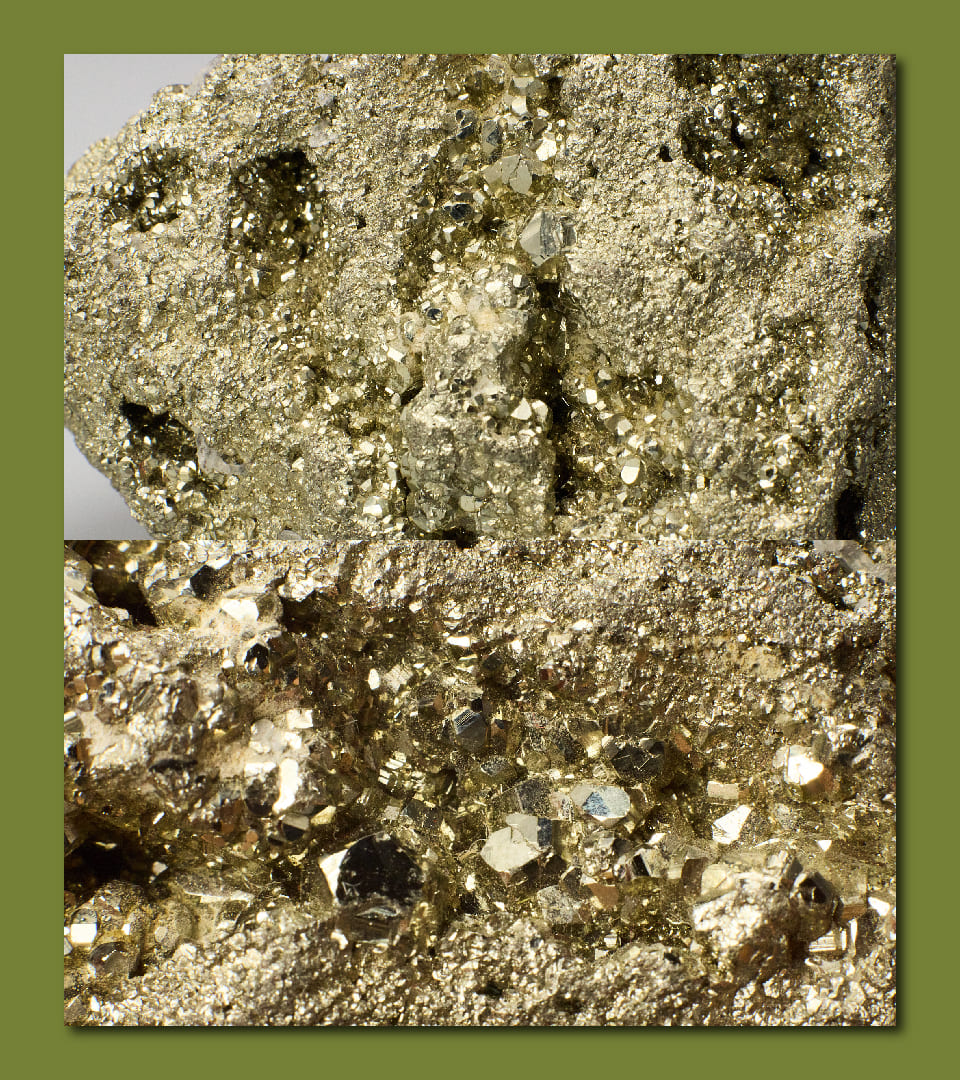 La pirita forma parte del grupo de los sulfuros y es común encontrarla formando cristales cúbicos. Por su color, suele ser confundido con el oro, sin embargo, la pirita presenta una mayor dureza.