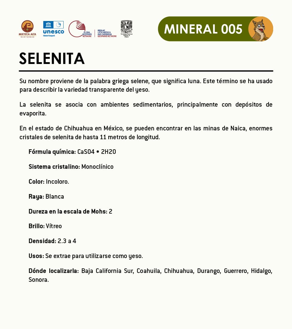 Dónde localizarla: Se puede localizar dentro nuestro Geoparque en el Municipio de Santo Domingo Tonaltepec en la Localidad Vista Hermosa, Oaxaca. Puede encontrarse además en localidades de San Luis Potosí, Baja California Sur y Jalisco (Panczner, 1987).