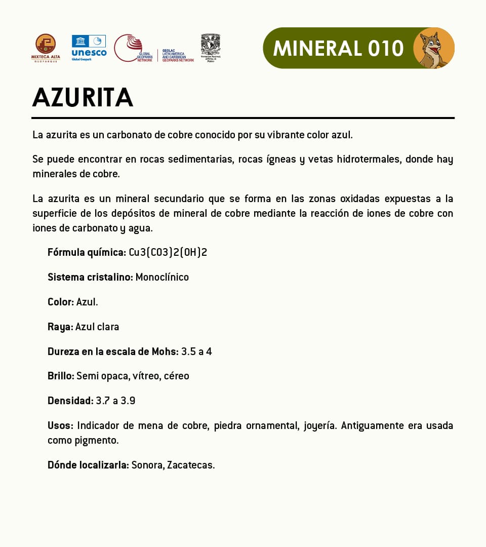 La azurita es un carbonato de cobre conocido por su vibrante color azul.