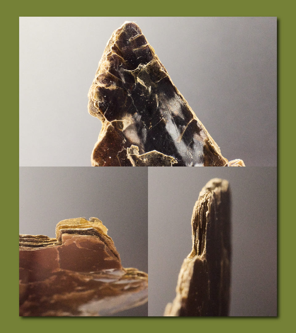 Este grupo de minerales es blando y se caracteriza por separarse en laminillas delgadas y flexibles de tonos oscuros, a manera de escamas.