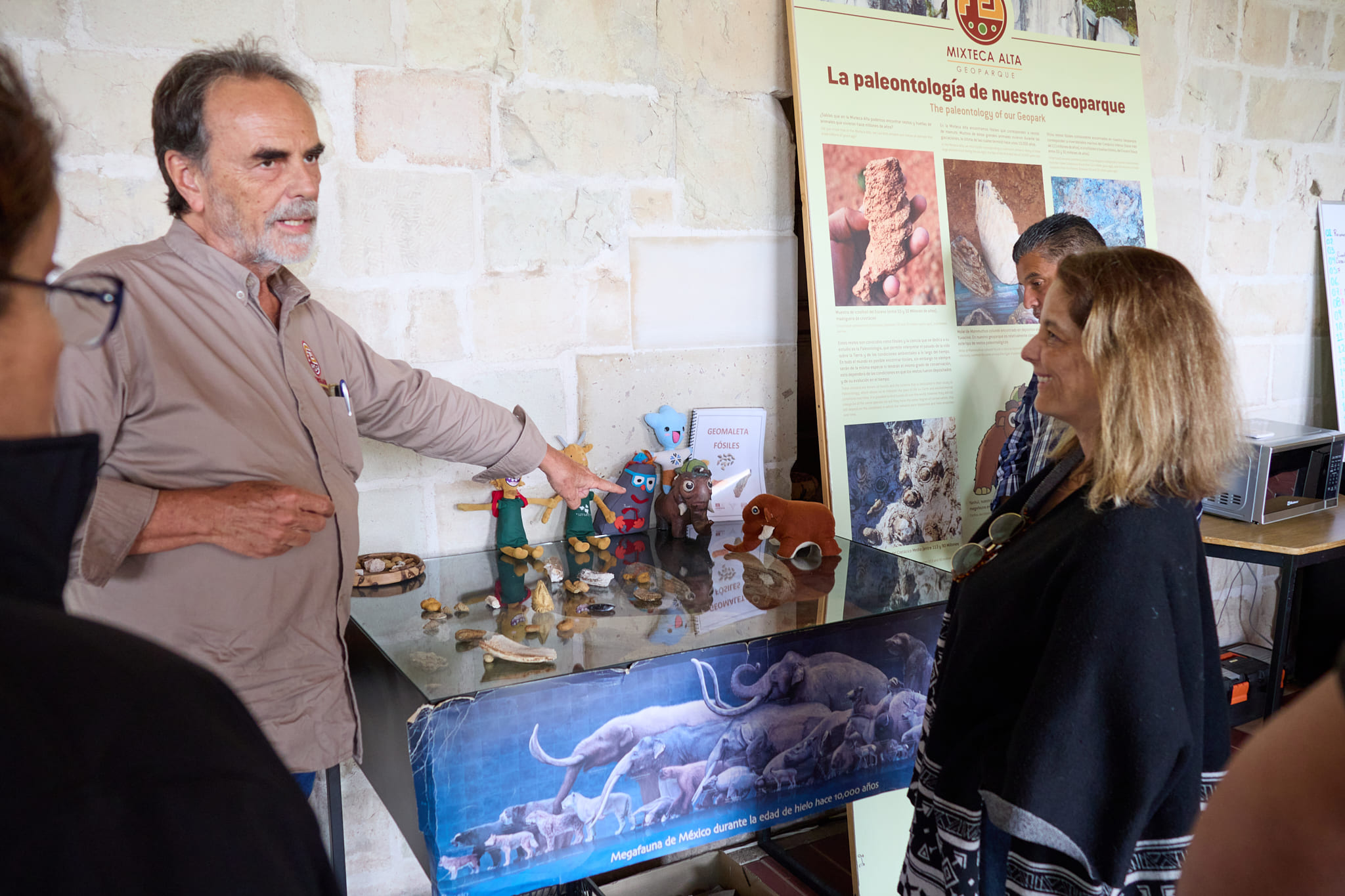 El Geoparque Mundial UNESCO Mixteca Alta tuvo el honor de recibir la visita del Dr. Manuel Suárez Lastra, Titular de la Dirección General de Divulgación de la Ciencia de la UNAM, y la Mtra. María Emilia Beyer Ruiz, Directora de Universum, Museo de las Ciencias de la UNAM, quienes —acompañados por su equipo— realizaron un recorrido por el Centro de Interpretación del Geoparque en Santo Domingo Yanhuitlán y algunos geositios de la región. También se contó con la presencia del Ing. geólogo Rubén López, fundador de Xplor Múzquiz. Esta visita tuvo como objetivo evaluar, desde la perspectiva museológica y científica, el discurso expositivo, las colecciones, el diseño de señalética y los materiales utilizados en el Centro de Interpretación y en los geosenderos, con el fin de generar recomendaciones que fortalezcan la imagen del Geoparque y atiendan las observaciones realizadas por la Red Global de Geoparques tras su última evaluación en junio de 2024.